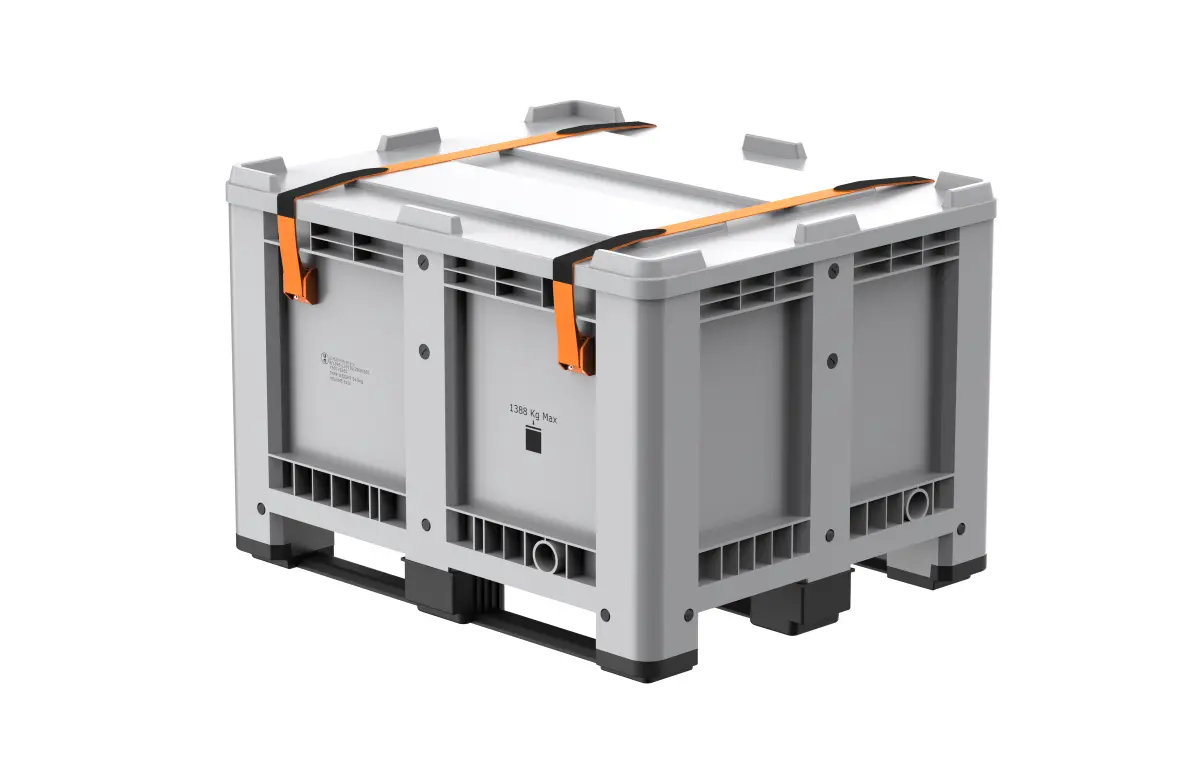 1200x1000x760 mm UN minősítésű, merevfalú konténer 3 csúszótalppal